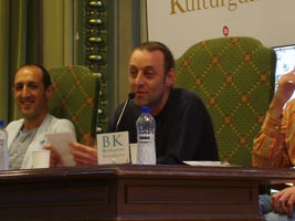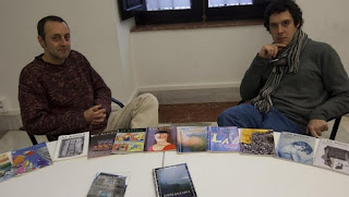 | Rafael Moriel junto a Jorge Girbau Bustos Presentación a prensa del libro «Demasiada Realidad» y «La Botica, revista literaria» Diario El Correo, 9-2-2010 (foto: Eduardo Argote) |