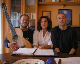 | Rafael Moriel en un ensayo junto al músico Jaime Yacamán y Dori del Mazo |