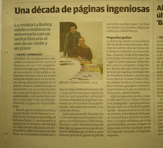 | «La Botica, revista literaria» Los impulsores de la revista celebran el décimo aniversario Diario El Correo (9-2-2010) |