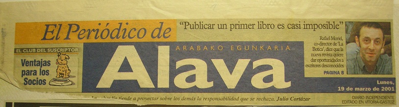 | Presentación del nº 1 «La Botica, revista literaria» Diario El Correo (febrero de 2001) |