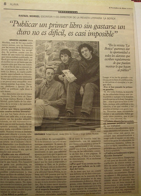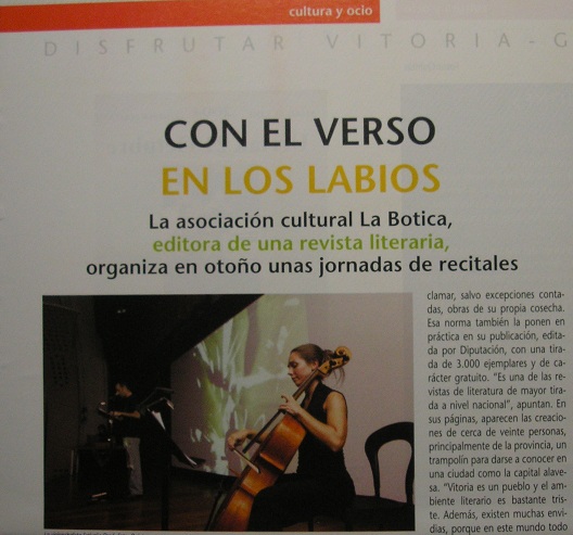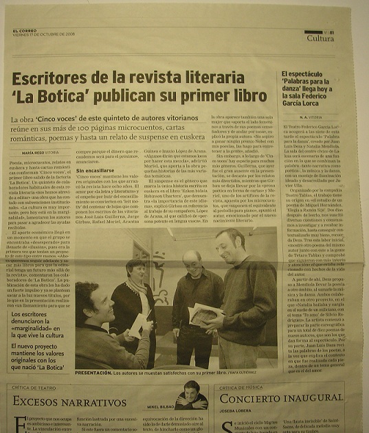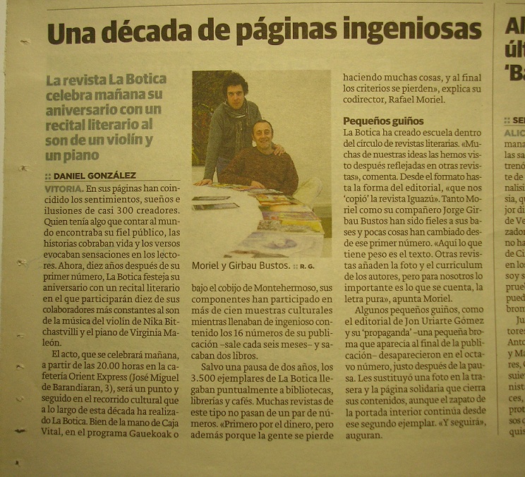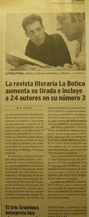 | «La Botica, revista literaria» Los impulsores de la revista celebran el décimo aniversario Diario El Correo (9-2-2010) |
