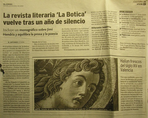 | «La Botica, revista literaria» Presentación del nº 5 Diario El Correo (20-12-2002) |